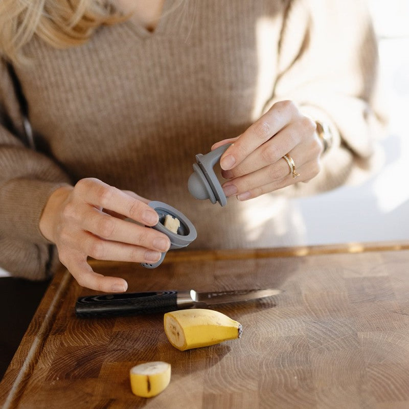 Der Mushie-Futterspender ist perfekt für die Kleinen, die bereit sind, feste Nahrung zu entdecken. Es führt Kinder sicher an neue Geschmacksrichtungen und Texturen heran, während sie lernen, selbstständig zu essen. Das zweiteilige Design des Frischfutterspenders ist leicht zu reinigen und für kleine Hände geeignet. Die kleinen Löcher geben die richtige Menge an frischem oder gefrorenem Obst aus dem Zuführteil frei. Der Futterspender ist ideal zum Mitnehmen auf Reisen oder zum Naschen zu Hause.