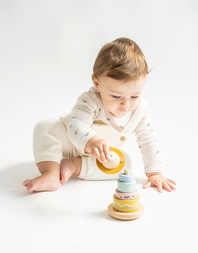 Roaaaar! Este leão empilhável é perfeito para entreter o seu filho durante horas enquanto ele tenta empilhar as suas peças. A sua base é curva, pelo que o desafio e a diversão serão maiores. É perfeito para desenvolver a coordenação mão-olho enquanto brinca e aprender a reconhecer cores, formas e tamanhos.