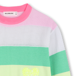 Acolhedora no seu tricô, esta camisola às riscas em puro algodão envolve as crianças num verdadeiro conforto, perfeito para brincar e se divertir. Adoramos o bordado adornado com lantejoulas que dá um toque brilhante sem excesso, enquanto o ajuste fácil de deslizar promete manhãs sem stress. Desenhado pela BILLIEBLUSH, combina qualidade e fantasia para se tornar rapidamente um favorito no guarda-roupa infantil.