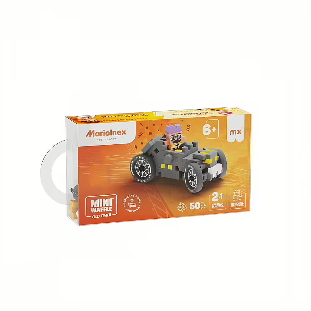 Vento no cabelo, sol forte e céu azul – um descapotável é o carro perfeito para uma viagem aos subúrbios! Dê uma volta com Jeremy e o seu carro antigo, Old Timer. Construa um descapotável com estilo para explorar a cidade ou a orla marítima. É um carro veloz que será admirado e de onde poderá desfrutar da beleza da natureza. Utilize 50 peças para construir um elegante descapotável e adicione este modelo à sua coleção de carrinhos de brincar Mini Waffle. Combine com outros conjuntos e corra pelas ruas da cidade. Tudo o que precisa, para além do motor, é dar asas à sua imaginação!