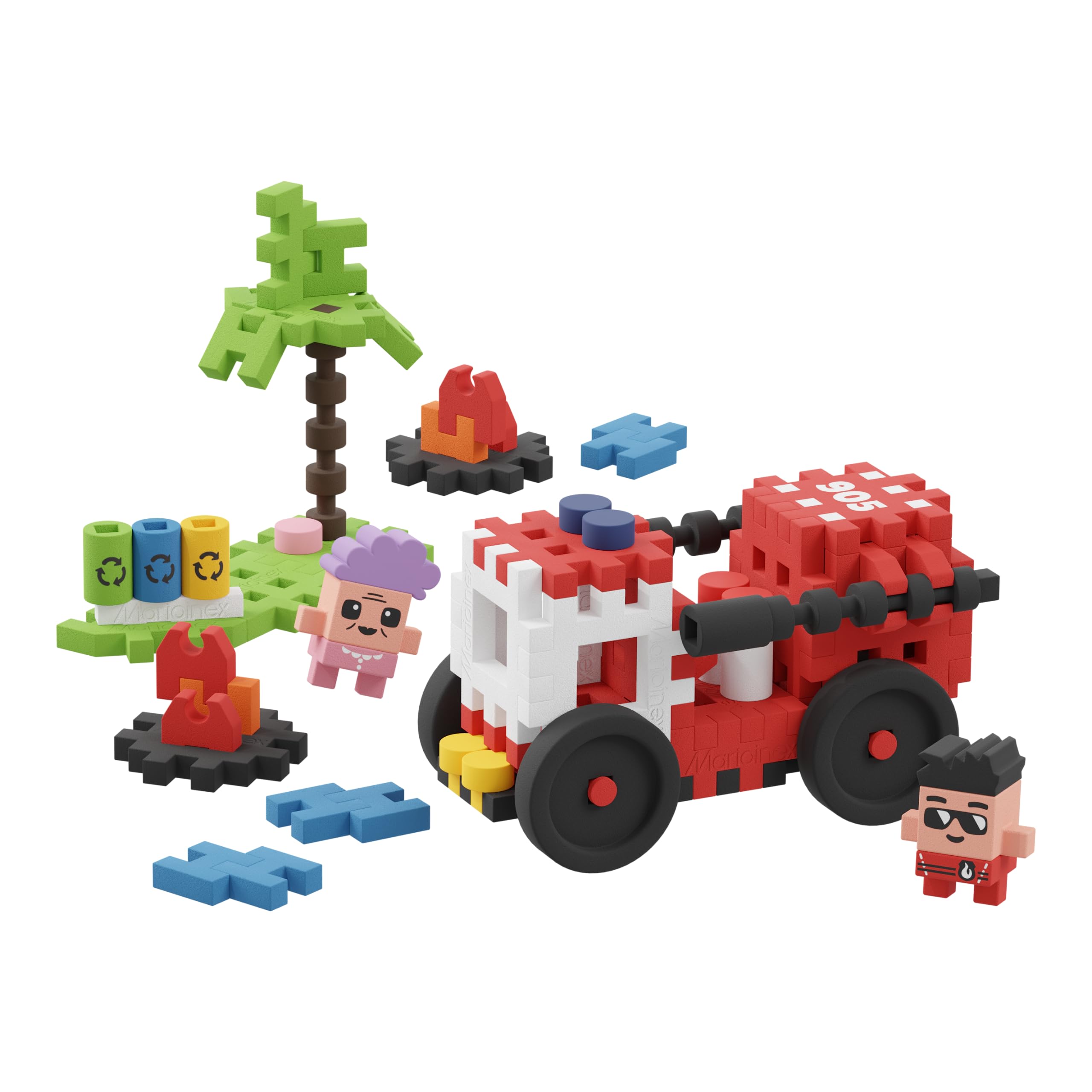 O conjunto Camião de Bombeiros é composto por 80 peças e duas personagens. Desta vez são o destemido bombeiro Sam e a Sra. Wanda, uma residente de Waffle City. Garanta mais uma noite de paz para a cidade.