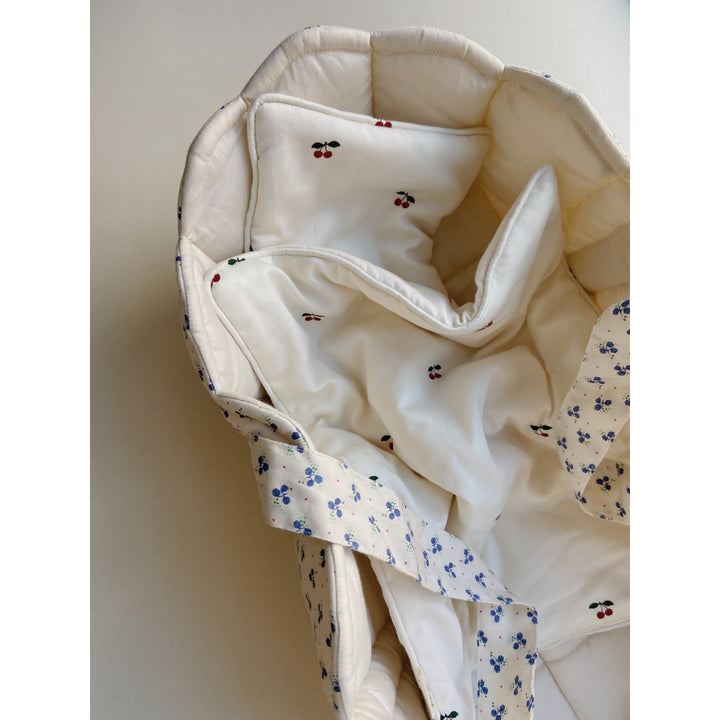 Gesteppte Puppenbettwäsche aus 100 % Bio-Baumwolle mit weichen Paspeln. Die Bettwäsche wird in einer passenden Stofftragetasche mit Kordelzug geliefert.