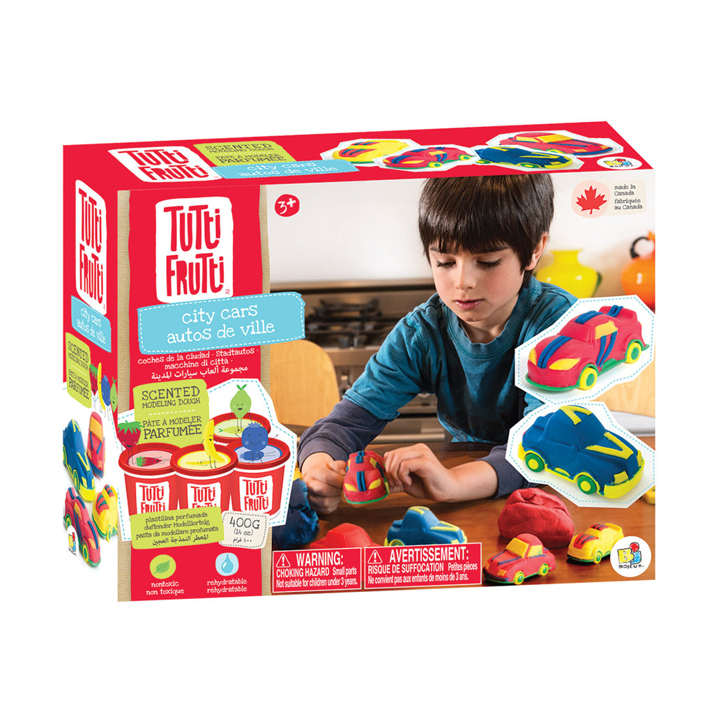 Das ideale Set für kleine Autofans! Mit ihren Kunststoffrädern können Ihre schönen Kreationen an den größten Rennen teilnehmen! Tutti Frutti-Modelliermasse ist einfach und angenehm zu verwenden, außerdem ungiftig und rehydrierbar für endlosen Spaß!