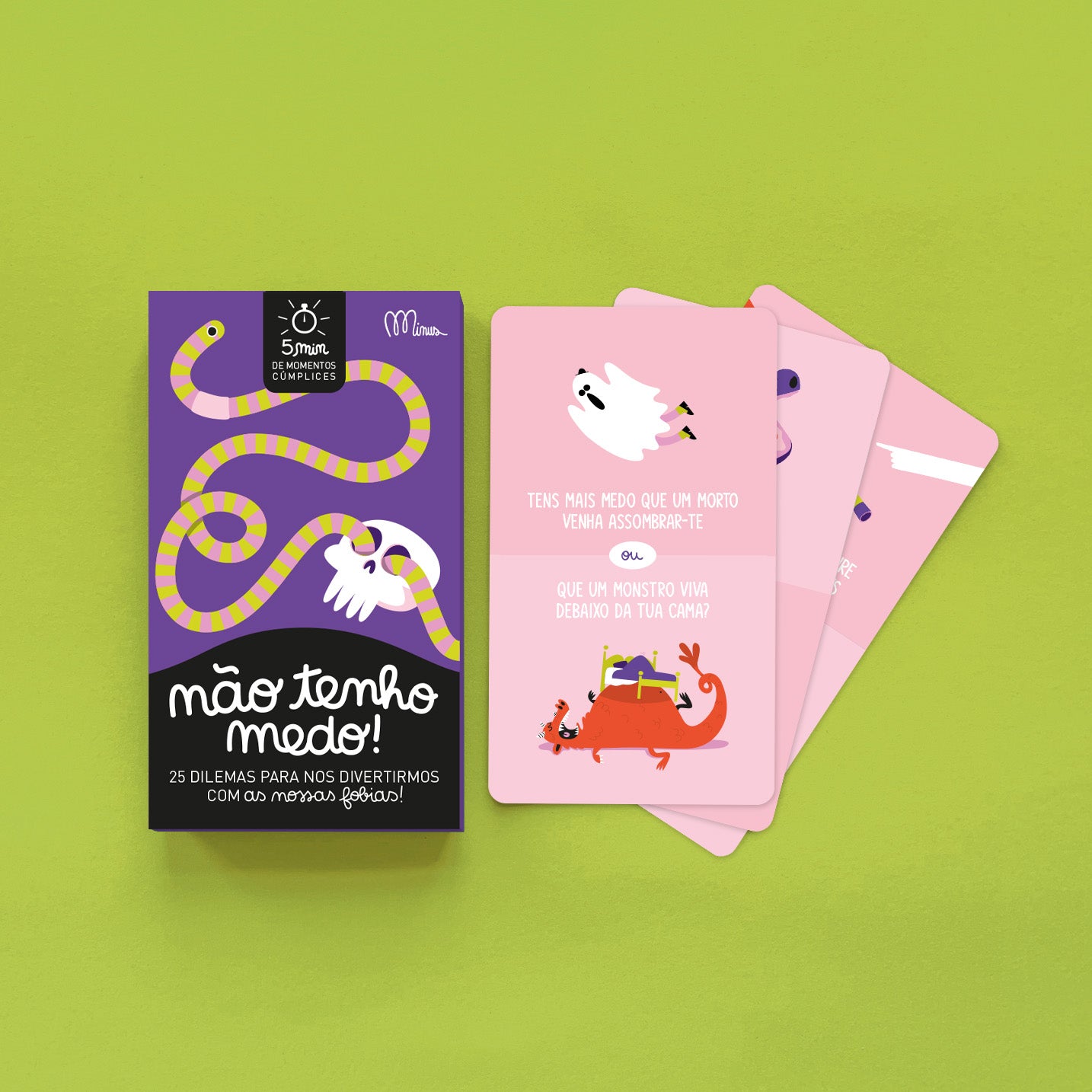 - Porque passamos o dia a correr de um lado para o outro e muitas vezes não temos tempo para nada, aqui está a coleção «5 minutos de momen- tos cúmplices». Cartas para empunharmos se tivermos 5 minutos para testarmos se nos conhecemos bem, compararmos os nossos gostos ou colocarmos questões completamente absurdas!