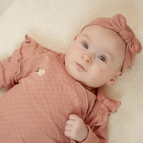 Aproveite cada primeiro momento com estilo! Este macacão moderno emana charme e elegância. Feito com tecido de textura fina, é suave e agradável ao toque. Delicados folhos adornam os ombros, dando um toque divertido, e um bonito bordado floral confere um toque extra de romantismo. O fecho é finalizado com uma pequena costura na borda para um charme adicional. O modelo transpassado facilita o vestir e despir o seu pequeno. Fabricado em algodão orgânico na bonita cor Rosa Blush, garante conforto durante todo o dia.