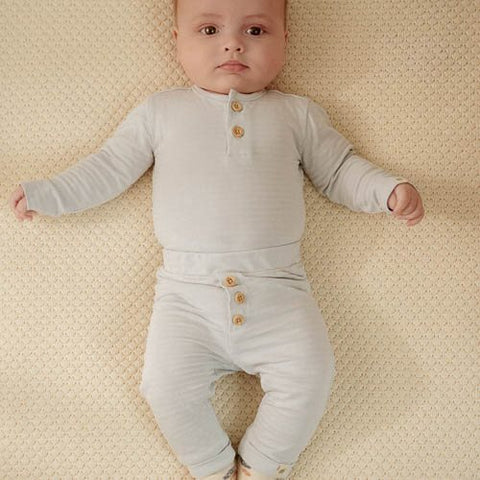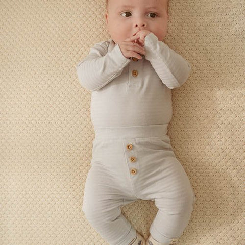 Preparados para muitos abraços?! Estas calças macias são feitas de algodão orgânico e oferecem conforto e estilo. A refinada estrutura listrada do tecido, num bonito tom de azul, é adornada com pequenos botões com efeito madeira na frente, para um toque de charme rústico. O cós elástico garante um bom ajuste e liberdade de movimentos, ideal para bebés ativos. Conjugue com a t-shirt a condizer para um look coordenado ou misture e combine com outras peças da coleção Amigos da Floresta.
