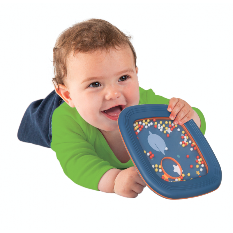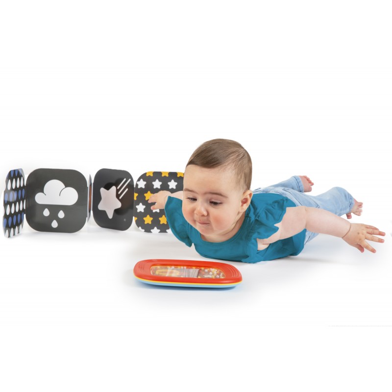 Observe o rosto do seu filho iluminar-se de alegria ao interagir com o conjunto inovador, que inclui um Shaking Drum e um livro de papel, frente e verso, com um visual de alto contraste.