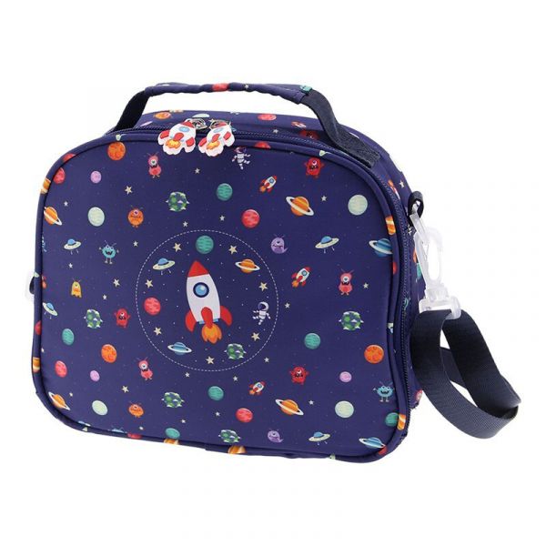 A Lancheira Térmica Aurea Kids – Espaço é muito confortável e prática para o dia a dia. É ideal para transportar alimentos frios, caixas lancheiras, iogurtes, bebidas ou frutas e para as crianças levarem para a escola e/ou para passeios e actividades extracurriculares. O forro interno de alumínio garante uma temperatura constante dos alimentos. Tem uma alça ajustável grande para transportá-la pendurada no ombro ou a tiracolo e uma alça para transportar na mão.