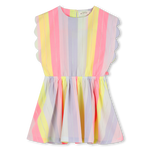 Vamos celebrar a natureza despreocupada das tardes ensolaradas com este vestido BILLIEBLUSH: um algodão listrado claro com um fio brilhante e reflexos que capta a luz. As mangas curtas com acabamento shell e o decote arredondado acrescentam um toque delicado, enquanto a cintura elástica garante conforto e liberdade de brincadeira. Fecho em forma de lágrima na parte de trás para um look bonito e fácil de colocar.