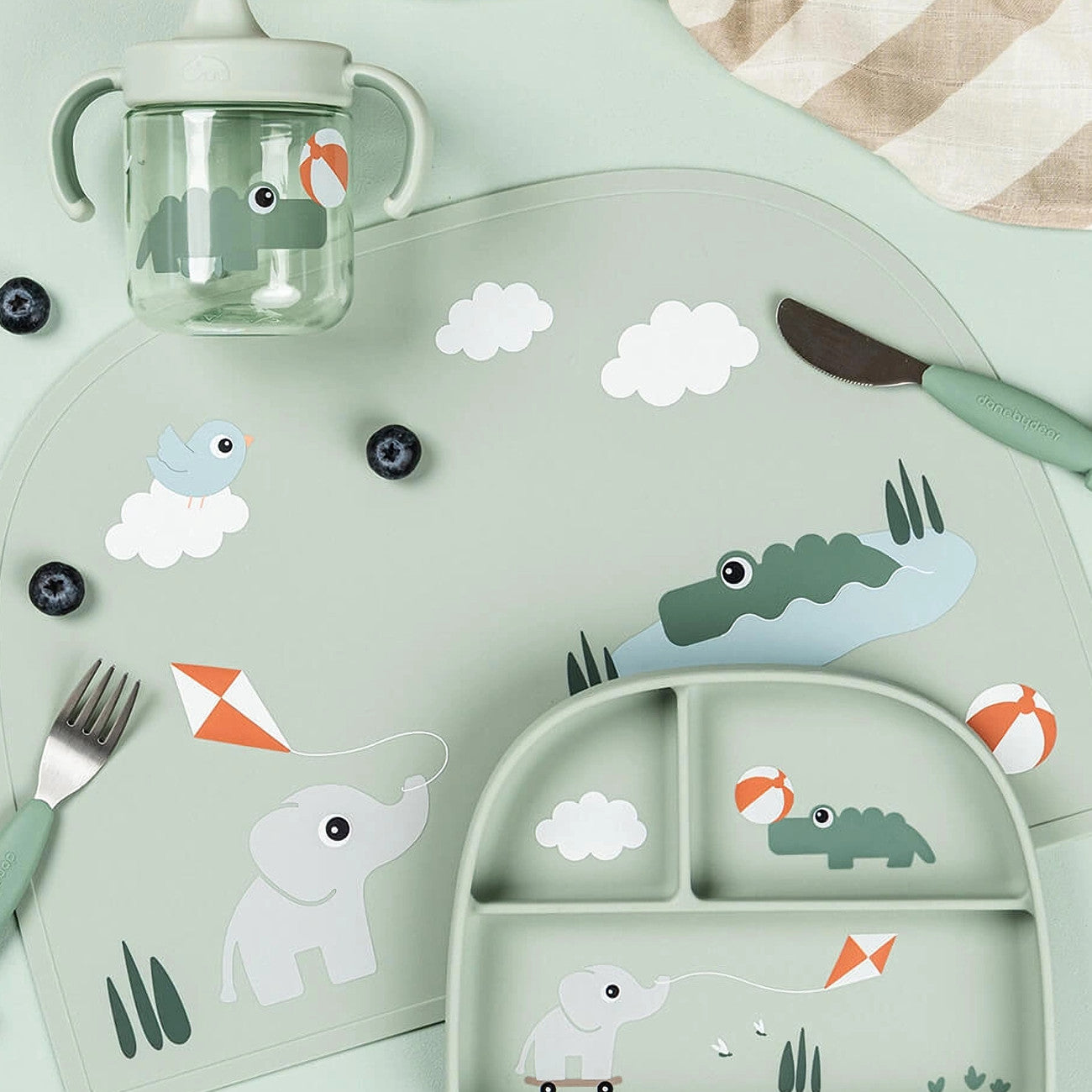 Prato com Ventosa e Compartimentos Stick&Stay - Playground Green - Done by Deer