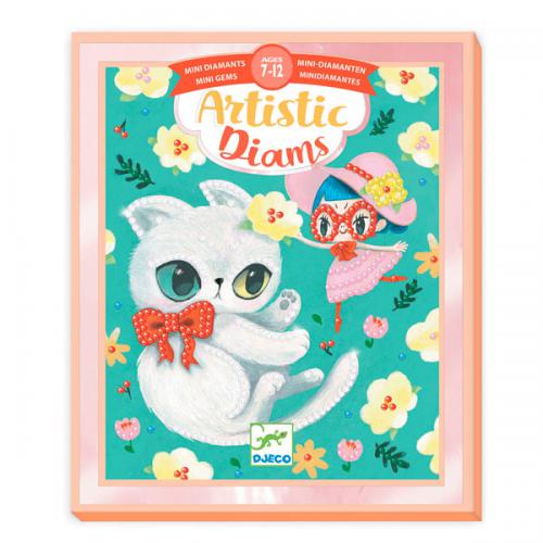 - + 2000 mini diamantes facetados. Incluye: 4 tarjetas ilustradas (14 x 16 cm), 6 tubos de mini diamantes en colores surtidos, 1 cajón clasificador, 1 bloque de cera, 1 herramienta de engaste de diamantes, 1 folleto guía de colores paso a paso.