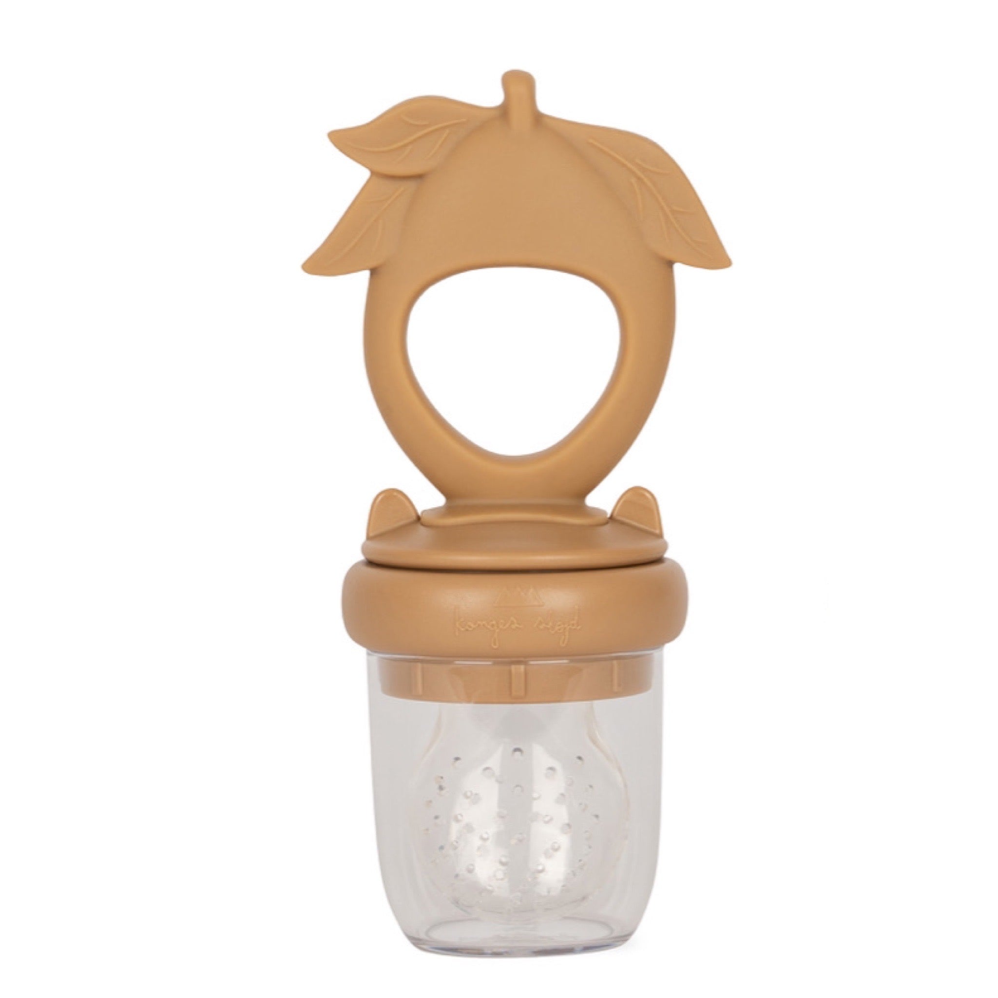 Nuestro chupete de frutas permite que los niños pequeños aprendan a alimentarse solos y minimiza el riesgo de asfixia mientras su bebé aprende a tragar alimentos sólidos, especialmente frutas. Los mangos ergonómicos son fáciles de sostener para las manos pequeñas. El comedero tiene pequeños orificios que dejan pasar sólo pequeñas partículas de comida para que el bebé pueda alimentarse. Viene con una tapa protectora que mantiene la punta de silicona limpia e higiénica.