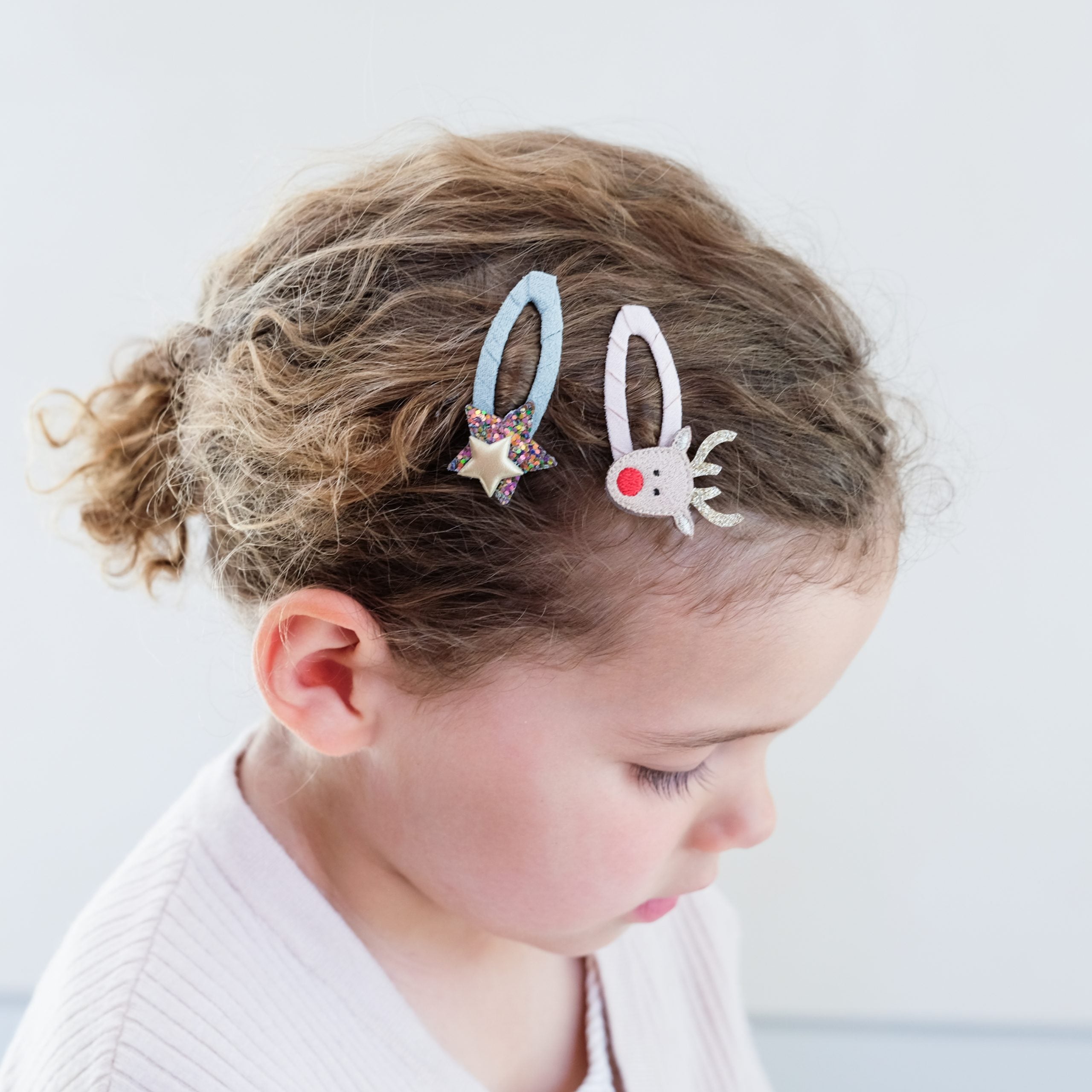 ¡A los más pequeños les encantarán estos divertidos clics de renos! Perfectos para añadir ese toque final a los conjuntos navideños, ¡estos clips seguramente harán sonreír a cualquier niño!