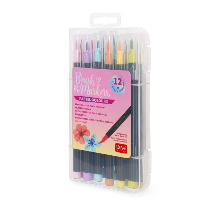 Libera al artista que llevas dentro con el juego Legami de 12 marcadores de pincel en colores pastel. Estas vibrantes herramientas contienen una punta de pincel de fibra de nailon flexible que recrea la experiencia de pintar sin complicaciones. Al cambiar la presión y la inclinación de la punta, das libertad a tu creatividad. Y gracias a la pintura a base de agua que contiene, puedes lograr fácilmente un efecto de acuarela mezclándola con un poco de agua y usando un pincel para crear hermosas imágenes usando el vibrante arco iris de colores.