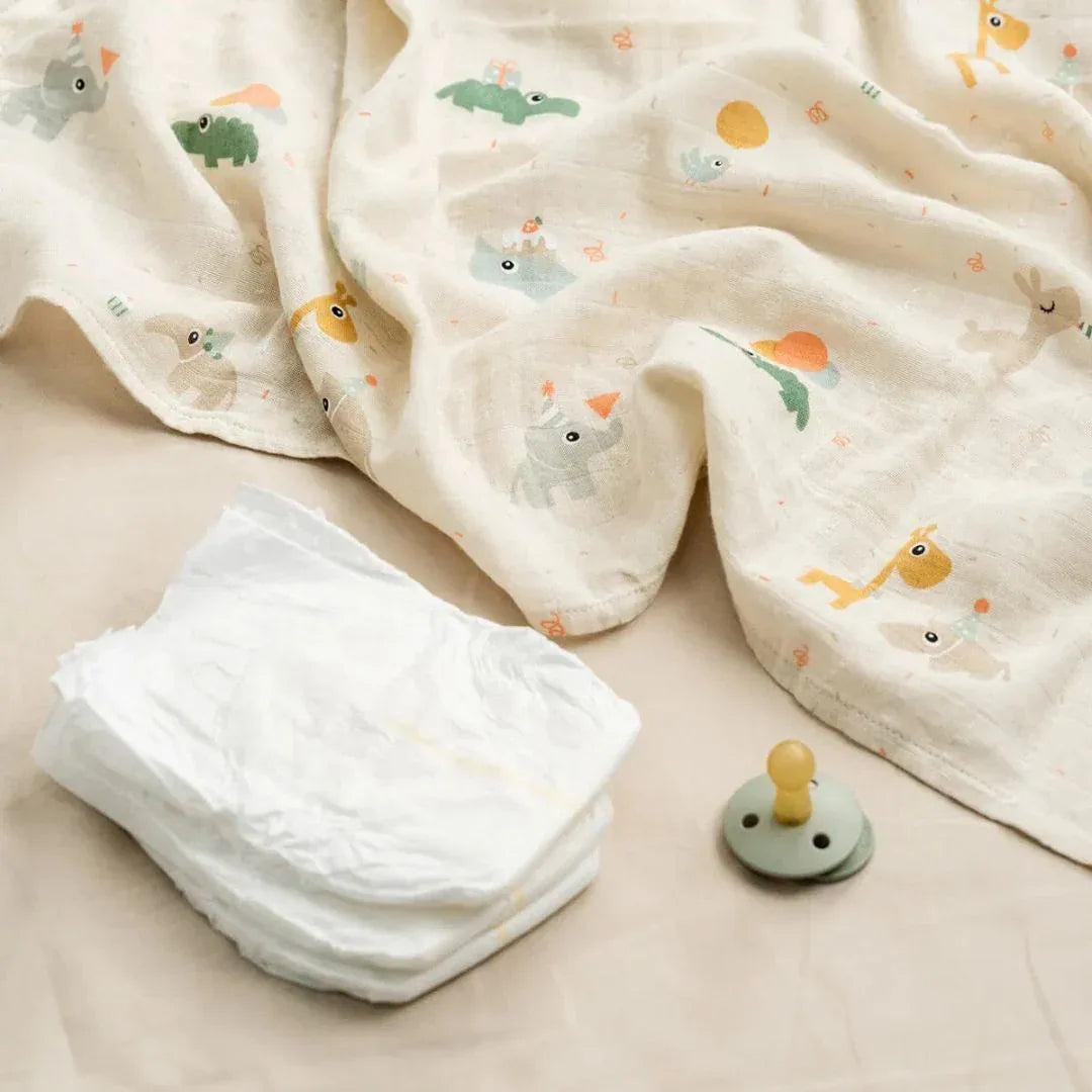 - As fraldas de pano de musselina de camada dupla são confortáveis e práticas.