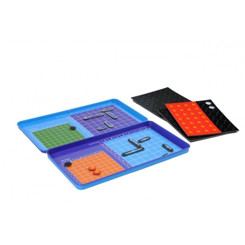 O tradicional jogo da Batalha Naval agora pode ser jogado e transportado para qualquer lado. A caixa magnética funciona como tabuleiro de jogo onde aderem as diferentes peças magnéticas! Vamos afundar navios nesta batalha!!
