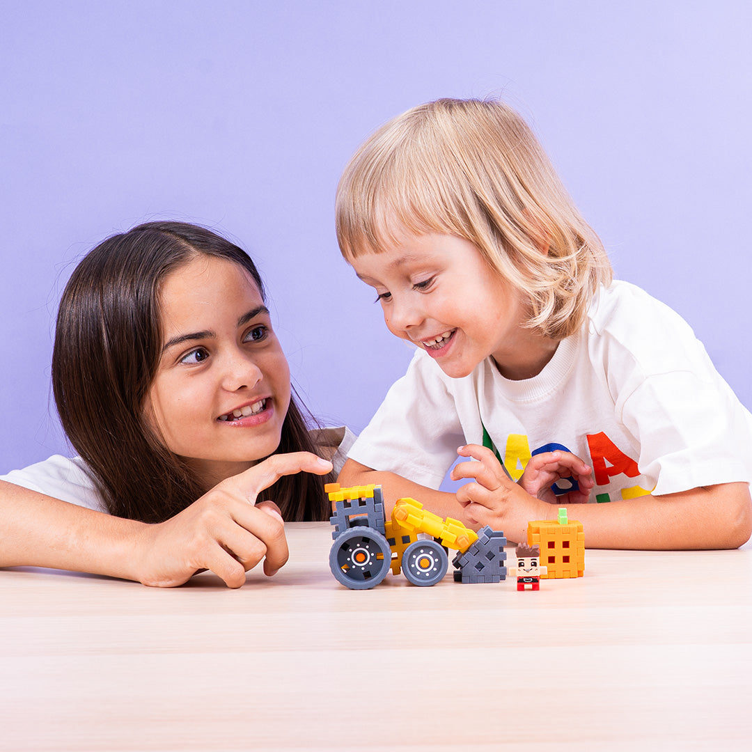 - O conjunto inclui 50 peças flexíveis e coloridas para construir um impressionante modelo de carregador frontal e uma figura do Freddy. O braço móvel e as rodas grandes conferem ao veículo um aspeto realista, acrescentando ainda mais diversão à experiência de brincadeira.