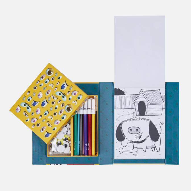 Crazy Eyes: lleva la creatividad al siguiente nivel. Los niños pueden colorear las ilustraciones originales de robots, osos y más, completando las imágenes con las pegatinas adhesivas para ojos incluidas, luego sacar el arte terminado del folleto y exhibirlo en el refrigerador para que todos lo admiren. Este es nuestro conjunto de colores clásico con borde.