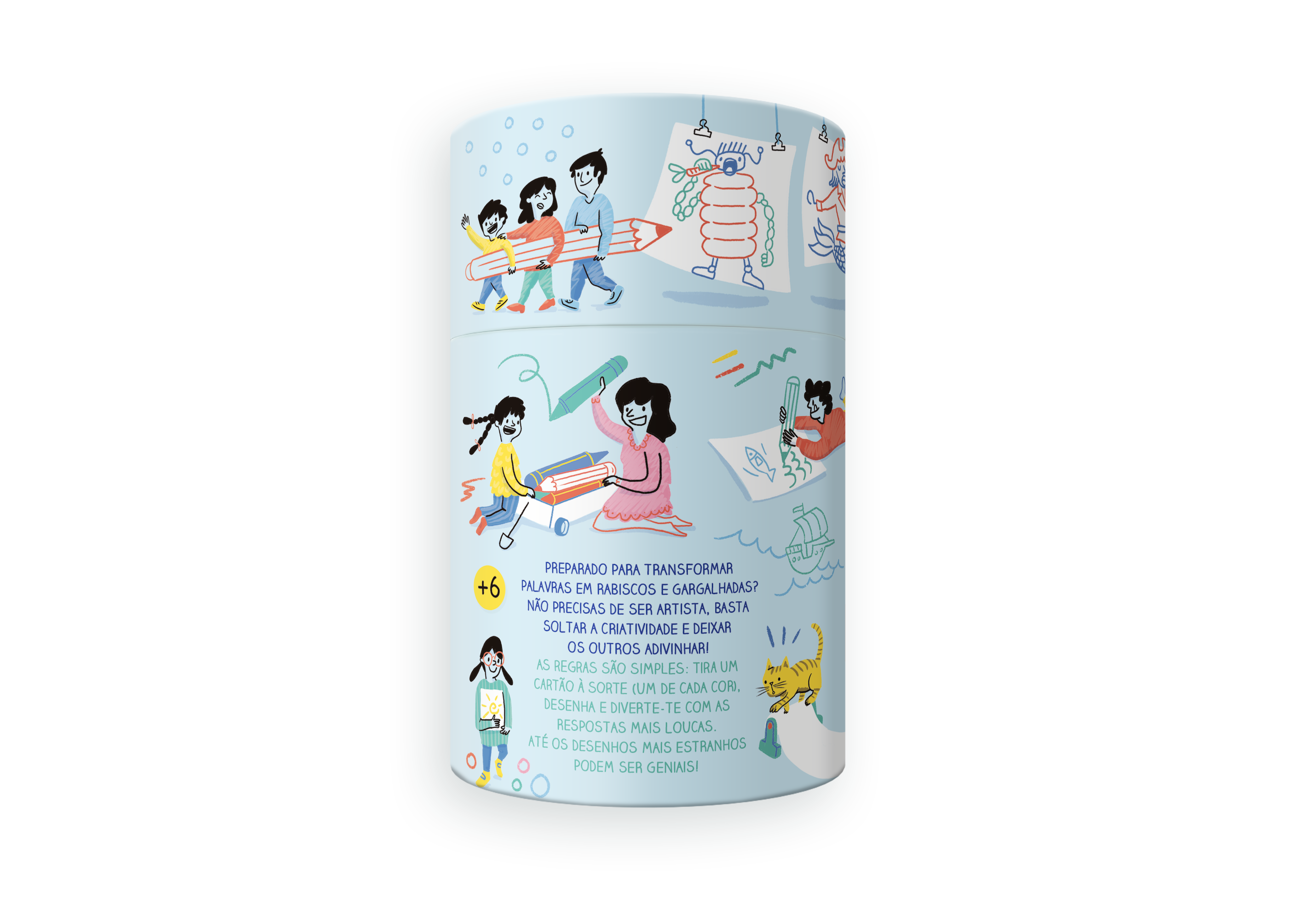 Preparado para transformar palavras em rabiscos e gargalhadas? Não precisas de ser artista, basta soltar a criatividade e deixar os outros adivinhar! As regras são simples, tira um cartão à sorte (um de cada cor), desenha e diverte-te com as respostas mais loucas. Até os desenhos mais estranhos podem ser geniais!