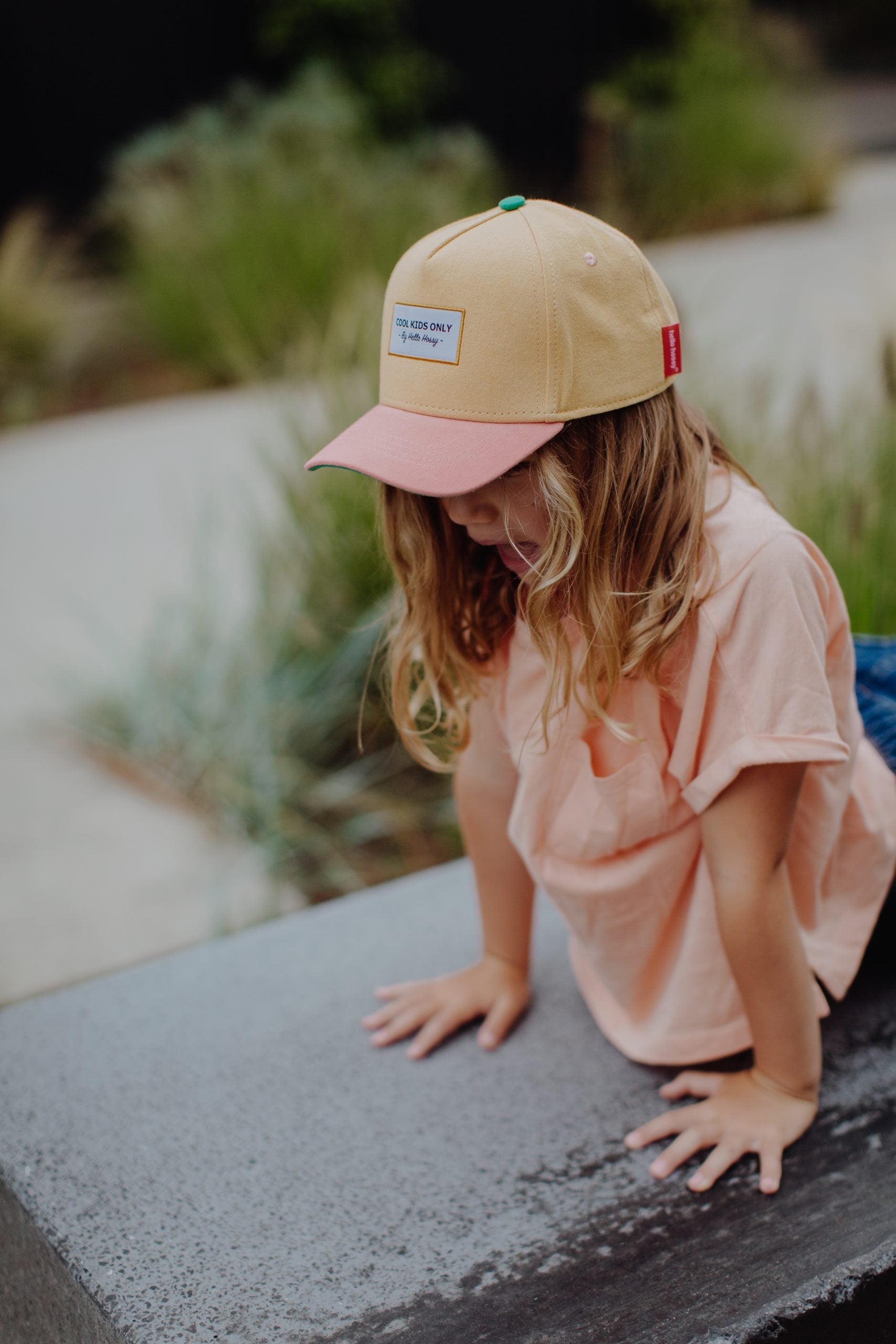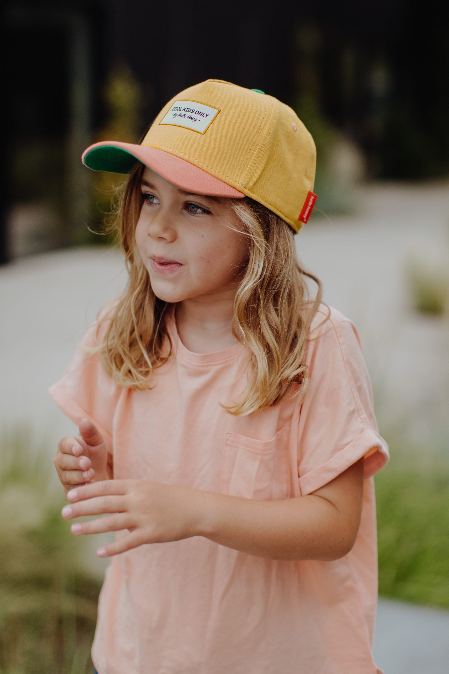 O boné Mini Sunset para bebés e crianças é um boné unissexo, parte da nossa coleção de bonés familiares. É apreciado por unanimidade por meninos e meninas. Boné colorido, boné com viseira curva, estilo beisebol, tem algo para agradar. 100% algodão orgânico.