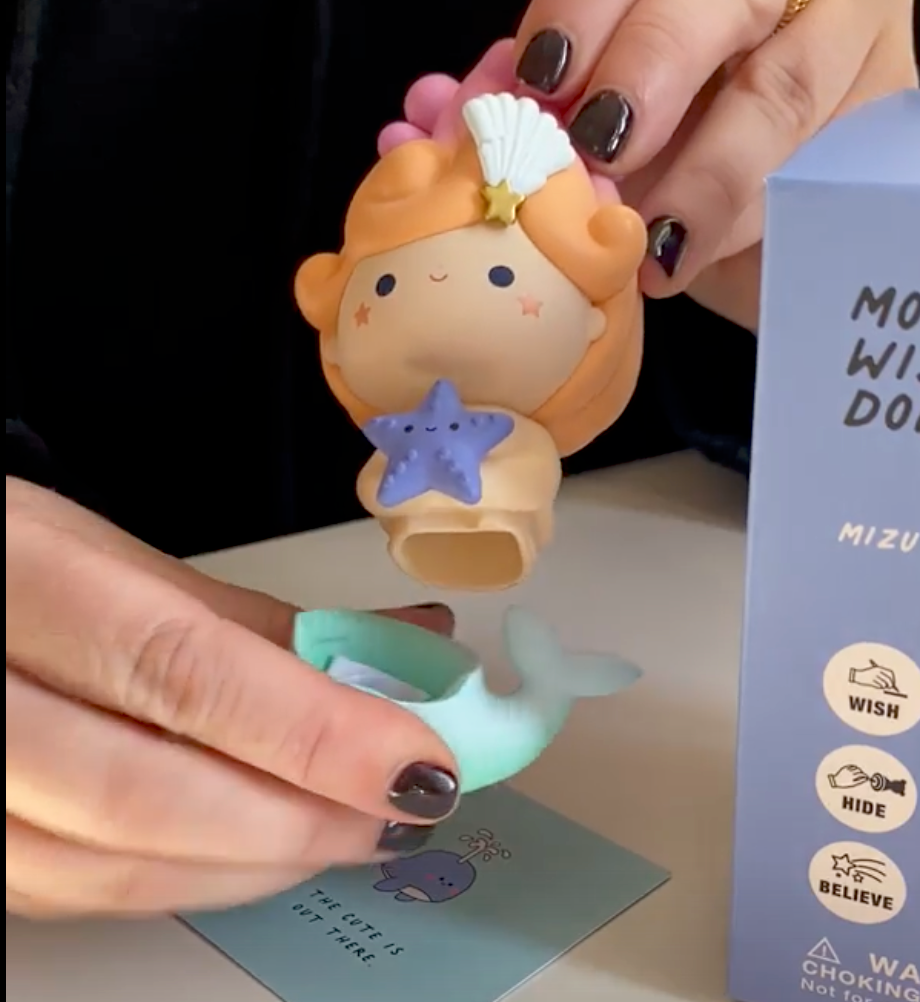 Mizu brilha através das cores sherbert do fundo do mar. Se for simpática com ela, ela pode partilhar o seu tutorial de cabelo. Esta sereia mística é uma guardiã perfeita para realizar sonhos. Escreva o seu desejo no papel escondido no seu interior e ACREDITE...