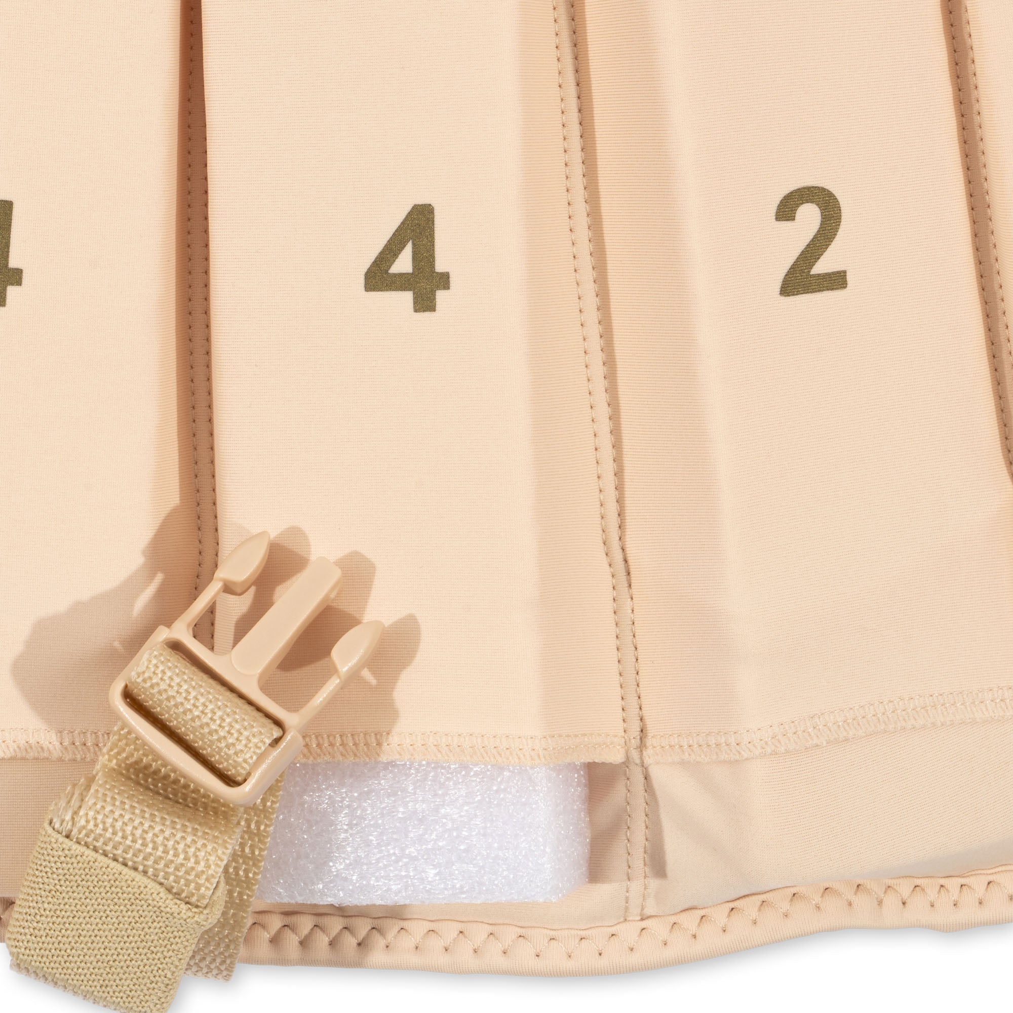 Colete flutuante confeccionado em 80% neoprene e forro 20% poliéster. Projetado com zíper e fecho de velcro. Possui uma cinta de segurança com fivela para que seu filho não escorregue do colete. Os coletes flutuantes permitem que o seu pequeno nadador melhore as suas habilidades durante todo o verão com os elementos flutuantes removíveis no interior. À medida que seu filho cresce em tamanho e confiança durante o verão, você pode remover os elementos gradualmente, começando com 1+1 e aumentando.
