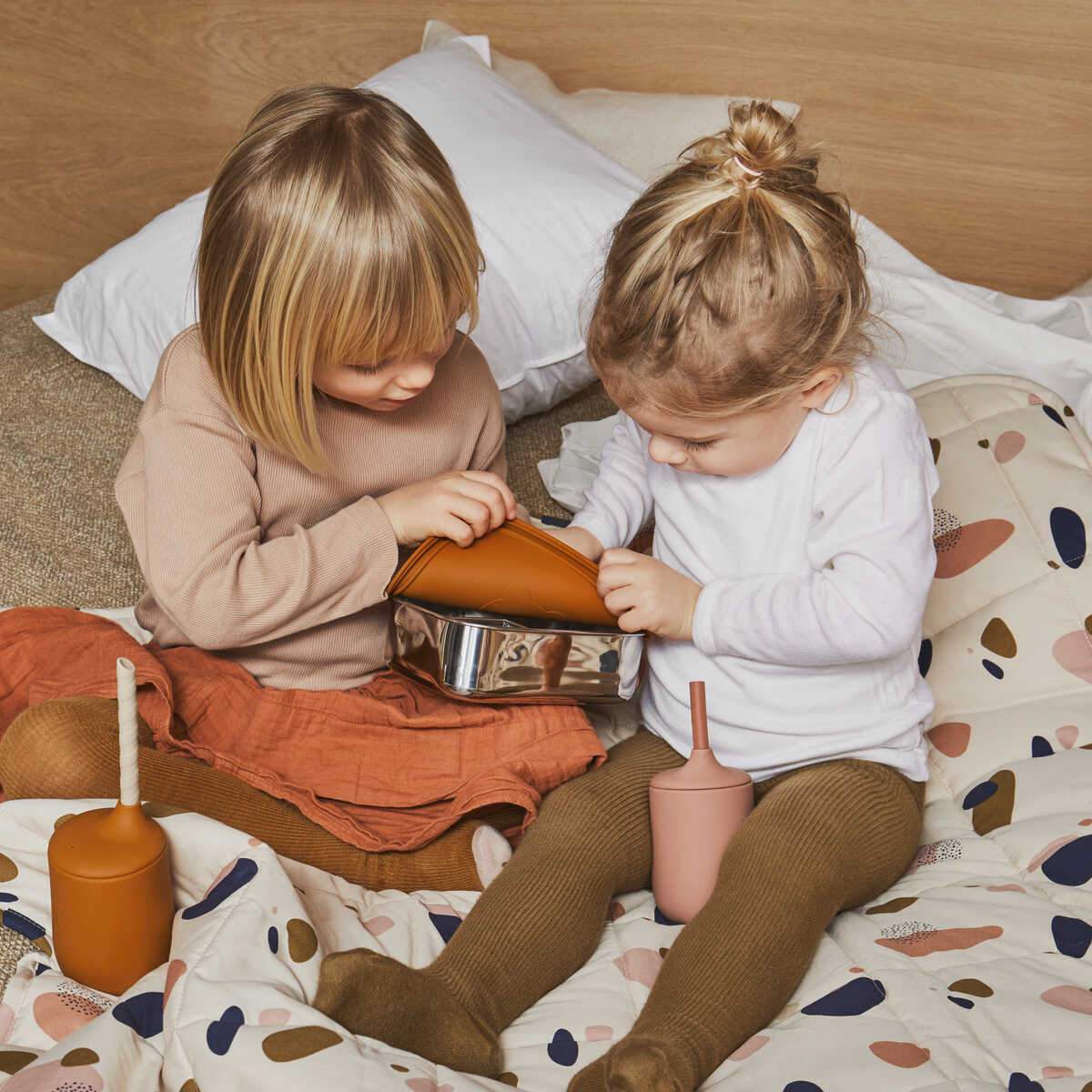 O copo Ellis Sippy é feito de 100% silicone e uma ótima maneira para seu filho melhorar as habilidades motoras finas. A tampa removível tem um pequeno bico e pode ser usada com ou sem a palhinha que acompanha.