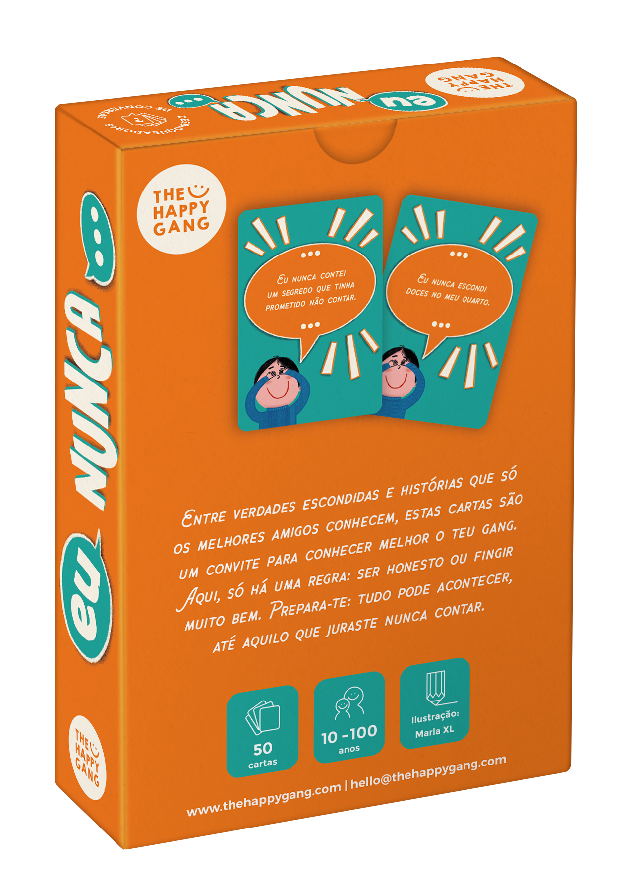 Entre verdades escondidas e histórias que só os melhores amigos conhecem, estas cartas são um convite para conhecer melhor o teu Gang. Aqui, só há uma regra: ser honesto ou fingir muito bem. prepara-te: tudo pode acontecer, até aquilo que juraste nunca contar.