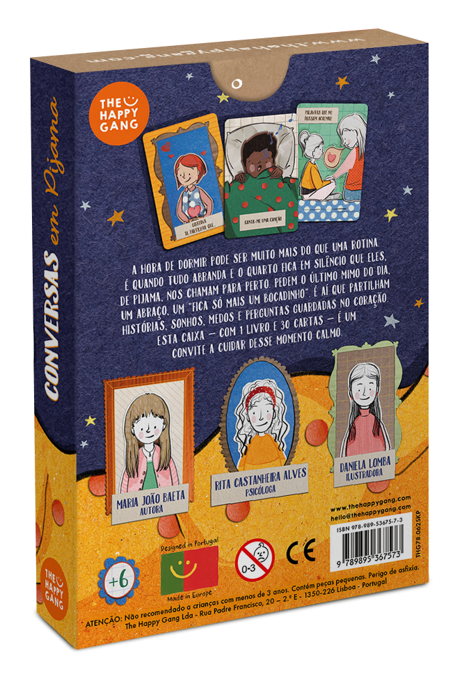 A hora de dormir pode ser muito mais que uma rotina. È quando tudo abranda e o quarto fica em silencio que eles, de pijama, nos chama para perto , pedem o último mimo do dia, um abraço, um "fica só mais um bocadinho". É aí que partilham histórias, sonhos, medos e perguntas guardadas no coração. Esta caixa - com um livro e 30 cartas - è um convite a cuidar desse momento calmo.