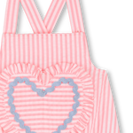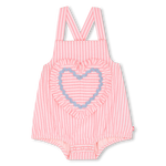 Listrada com ternura, este macacão BILLIEBLUSH seduz com seu coração bordado e seu charmoso babado. O forro leve e as alças ajustáveis proporcionam conforto ideal, enquanto o acabamento em biés sofisticado adiciona um toque colorido. Um modelo suave e alegre, ideal para dias ensolarados.