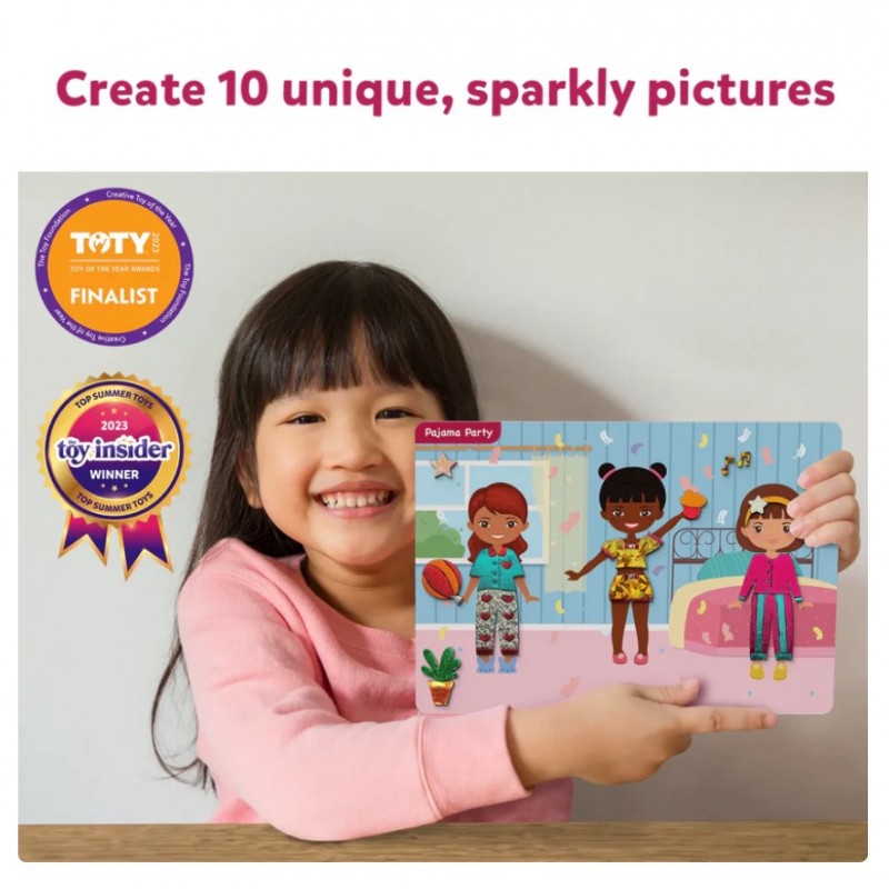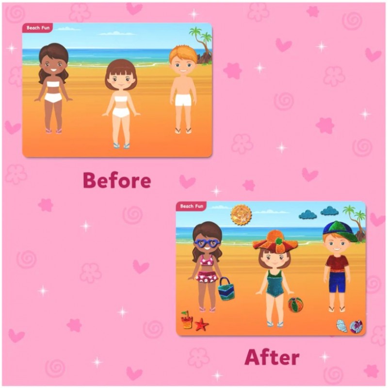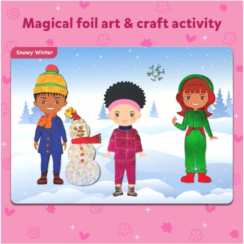 FOIL FUN é uma atividade mágica, divertida e que não suja! Estimula a criatividade das crianças e desenvolve as capacidades motoras. Permite que as crianças trabalhar à imaginação e criem verdadeiras obras primas! Como funciona: descolar o papel, pressionar a cor desejada e colar no cenário.
