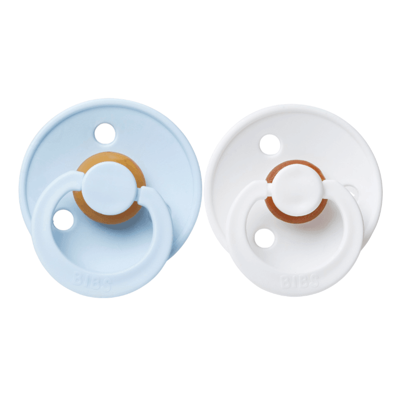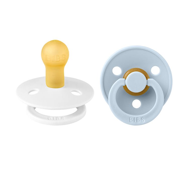 Pack de 2 chupetas Bibs em cores White e Baby Blue.