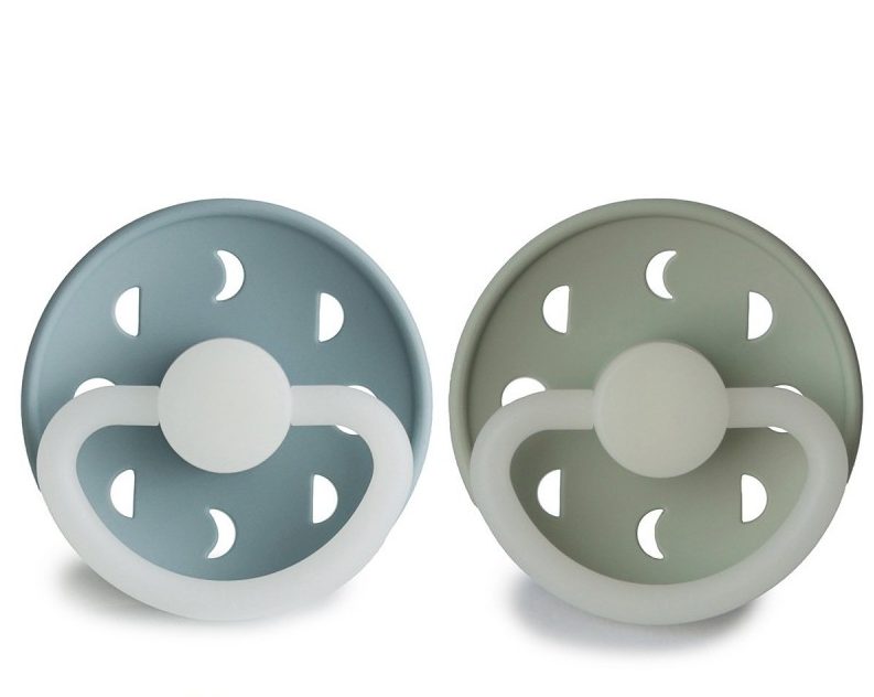 Pack de 2 Chupetas Noturnas em Silicone Moon Phase (Brilham no Escuro) - St Blue/Sage - FRIGG