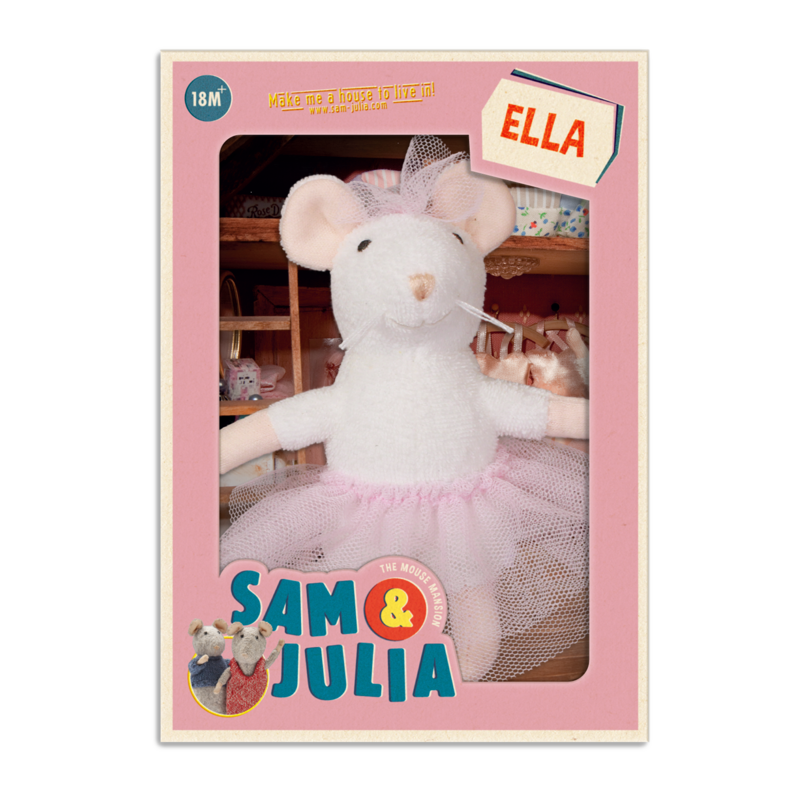 Dá vida às histórias da Mansão do Rato com este ratinho! Jogue as aventuras dos livros com este adorável peluche e leve-o para onde quer que vá. A Ella adora ballet e vive na Mansão Mouse. Prefere usar sapatilhas de ballet e tutu o dia todo. Ella pratica piruetas na barra do seu quarto. E, por vezes, ela atua no teatro, juntamente com o Sam. Pode ler tudo sobre as suas aventuras na série de livros The Mouse Mansion.