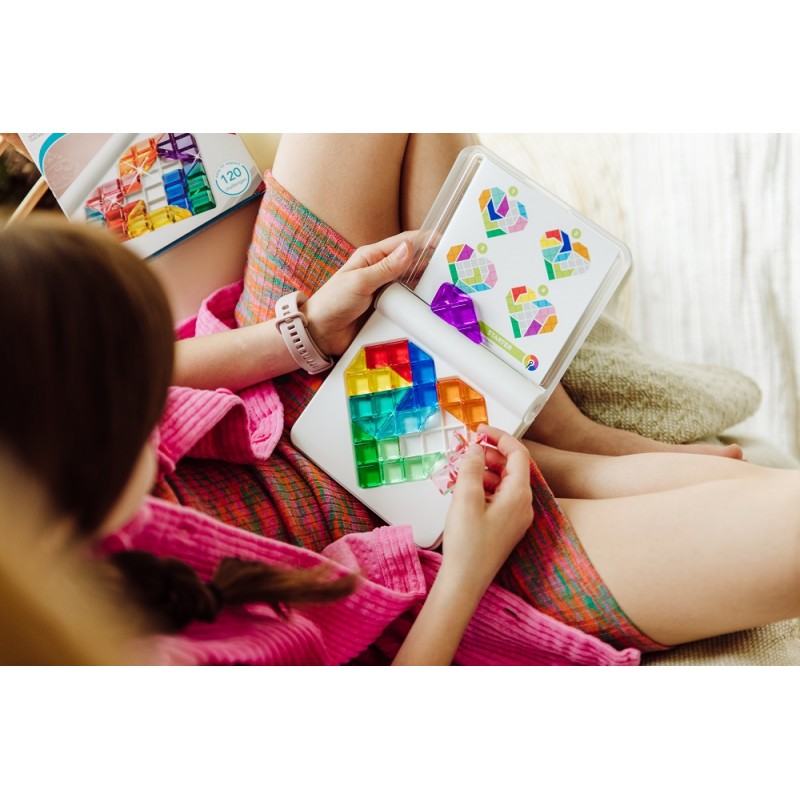 Mostre um pouco de amor ao seu cérebro com essas pedras preciosas coloridas. Você consegue encaixar todas as peças no tabuleiro de jogo? Este jogo de quebra-cabeça ideal para viagens vem com um tabuleiro de dupla face e 120 desafios… para um relacionamento prolongado! Tudo que você precisa é amor.