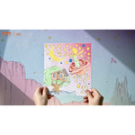 - Só precisas de um pequeno copo com água e do pincel incluído: mergulhar o pincel, misturar as cores e ver as cenas ganharem vida com surpreendentes efeitos de aguarela.