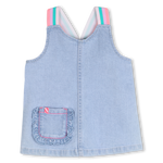 Este vestido BILLIEBLUSH revisita o jeans com suavidade e criatividade. As alças multicoloridas dão um espírito veraniego e brilhante, e o bolso com babados na frente adiciona um toque encantador e refinado. Um modelo cheio de vida, perfeito para dias ensolarados e momentos de brincadeira.