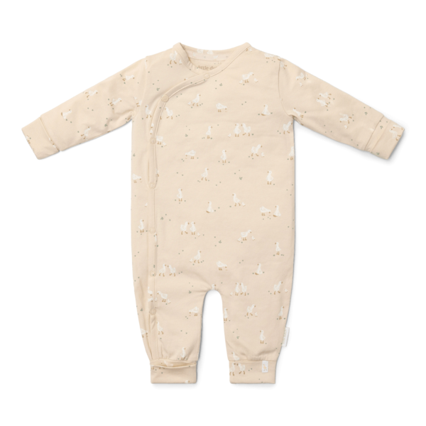 Este adorável macacão cor de areia com um divertido estampado de gansinhos é uma opção quente e aconchegante para o seu pequenote. O modelo transpassado facilita muito na hora de vestir e despir, e os punhos nas mangas e nas pernas garantem que a roupa acompanha o crescimento do seu bebé. O algodão orgânico macio é ideal para a pele sensível do bebé.