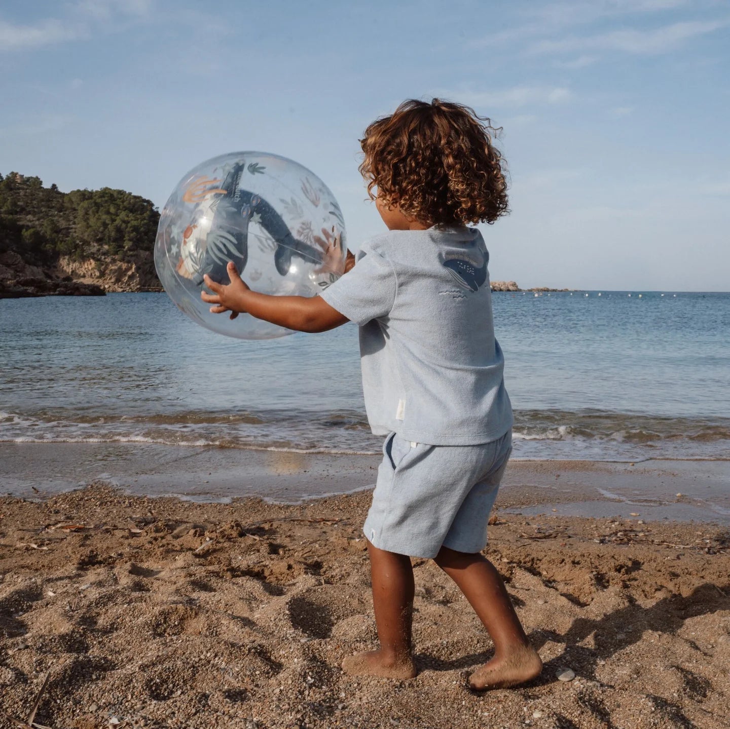 Diversão garantida com uma surpresa refrescante. Que o verão comece com a bola de praia 3D azul Ocean World. Dentro desta bola de praia transparente, há uma baleia 3D super gira. Perfeita para se divertir na praia, na piscina ou em casa, no jardim. Pode encher e esvaziar a bola facilmente. O diâmetro de 35 cm é ideal para mãos pequenas e garante muitos momentos de alegria.