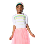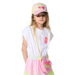 Descubra o boné de tecido BILLIEBLUSH, um acessório divertido que ilumina cada pedalada. O visor está decorado com contas multicoloridas e uma ilustração em relevo, enquanto um logótipo impresso adorna a lateral. Uma etiqueta listrada e tecida acrescenta um toque refinado e o fecho ajustável em plástico com clipe garante um ajuste confortável. Perfeito para pequenos aventureiros que gostam de brincar com estilo.