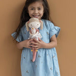 Conheça a adorável Anna. Esta boneca de pano em sua saia fofa mal pode esperar para ser abraçada. Ela adora pular em jardins cheios de flores e borboletas. Junto com seu passarinho, Anna será sua nova melhor amiga. Ela sempre estará lá quando você quiser brincar ou precisar de um grande abraço. Qual será sua primeira atividade juntos? Talvez um passeio pelo jardim com o carrinho de boneca de madeira combinando!? Anna é macia e fofinha, tem 35 cm de altura e vem em uma linda caixa de armazenamento.