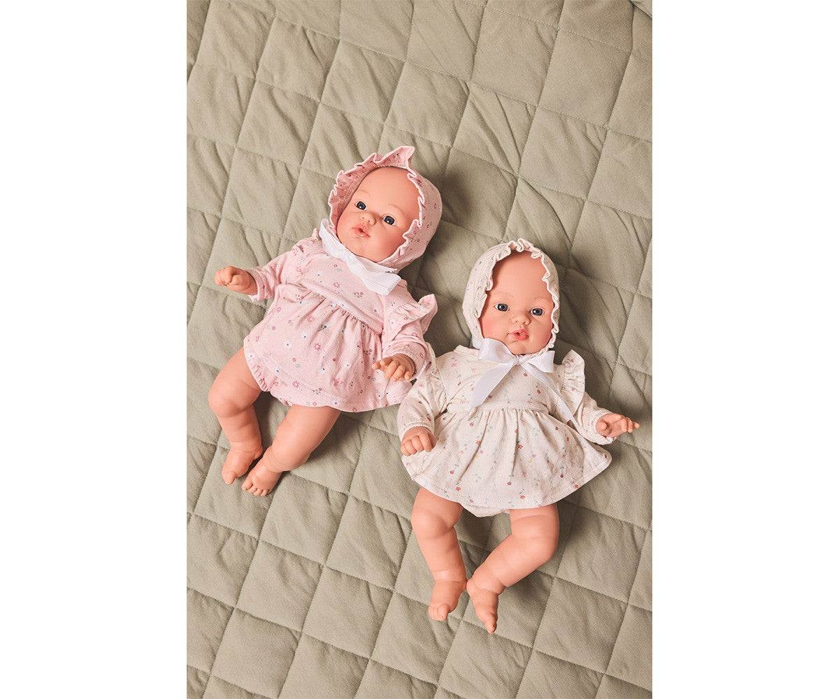 - Inclui: boneca Koke, coleção Flowers, vestido com fecho de correr nas costas e chapéu de bebé com laço a condizer.