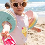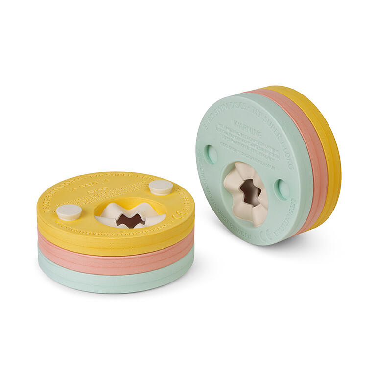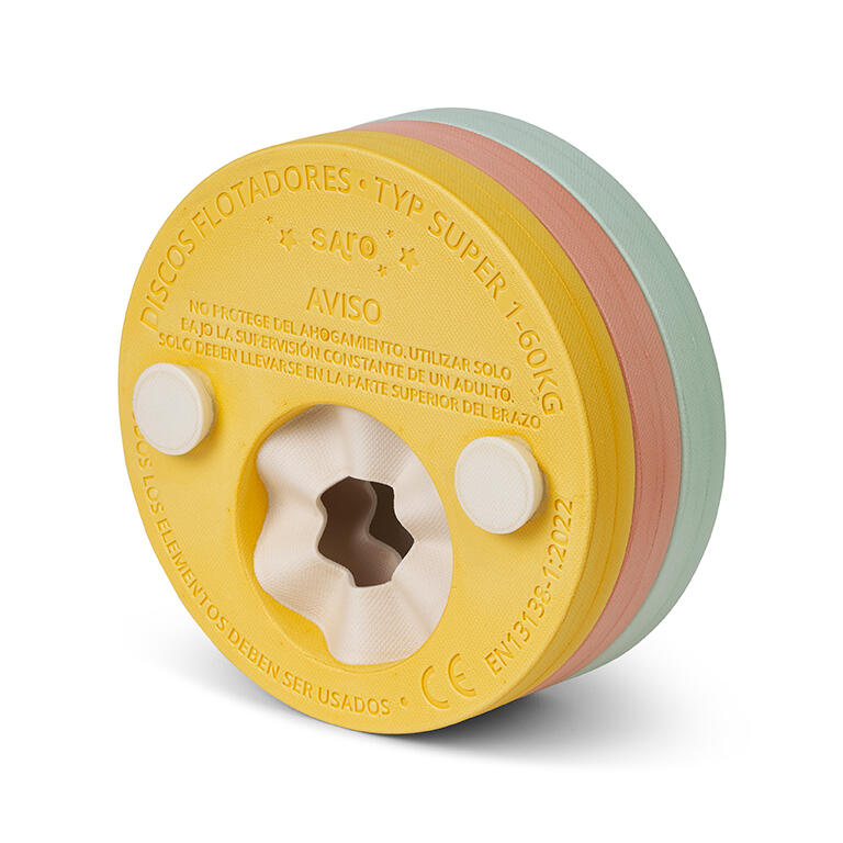 Na água, patos! As braçadeiras de flutuação da Saro são o acessório perfeito para aprender a nadar com conforto e segurança. Possuem 3 discos de flutuação para cada braço, que podem ser removidos um de cada vez, dependendo do progresso da criança na natação, mantendo ambos os braços equipados com o mesmo número de discos para garantir a segurança. Se notar fadiga ou falta de coordenação motora, será necessário adicionar um disco. São muito fáceis de colocar! Basta passar o braço pelas tiras elásticas, colocando a parte estreita do disco por baixo da axila. O seu pequenote ficará realmente confortável, pois são muito leves e suaves ao toque.