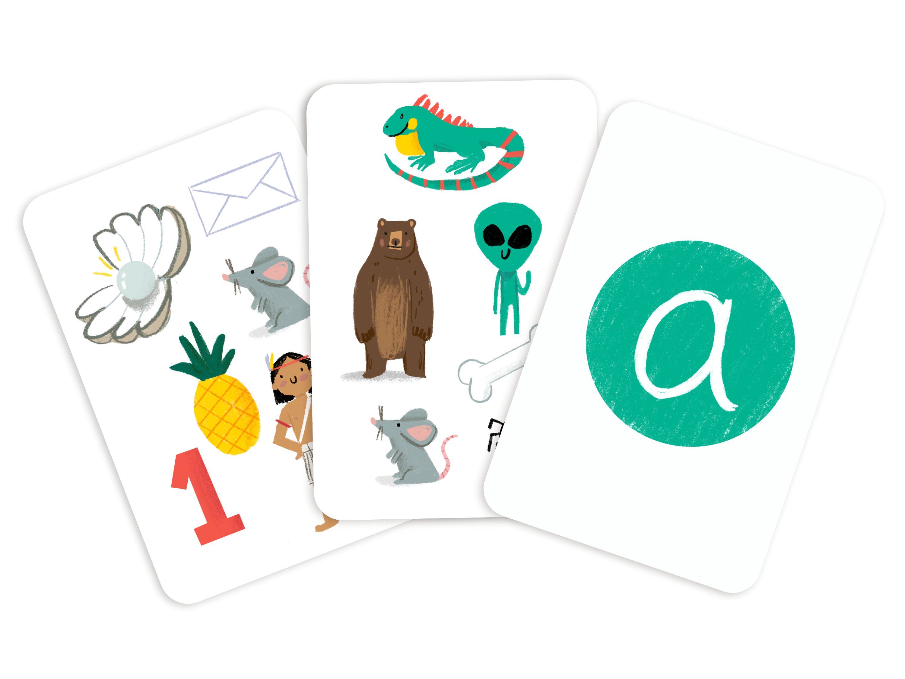 Será que consigues encontrar a palavra que começa com a, e, i, o, u? Vira uma carta, identifica a vogal aí representada e encontra a imagem que começa com essa letra, o mais rápido ganha! Mas também há intrusos inesperados escondidos em cada carta, será que consegues descobrir? Um jogo rápido e divertido que te vai ajudar a aprender os sons, as vogais e as primeiras palavras!