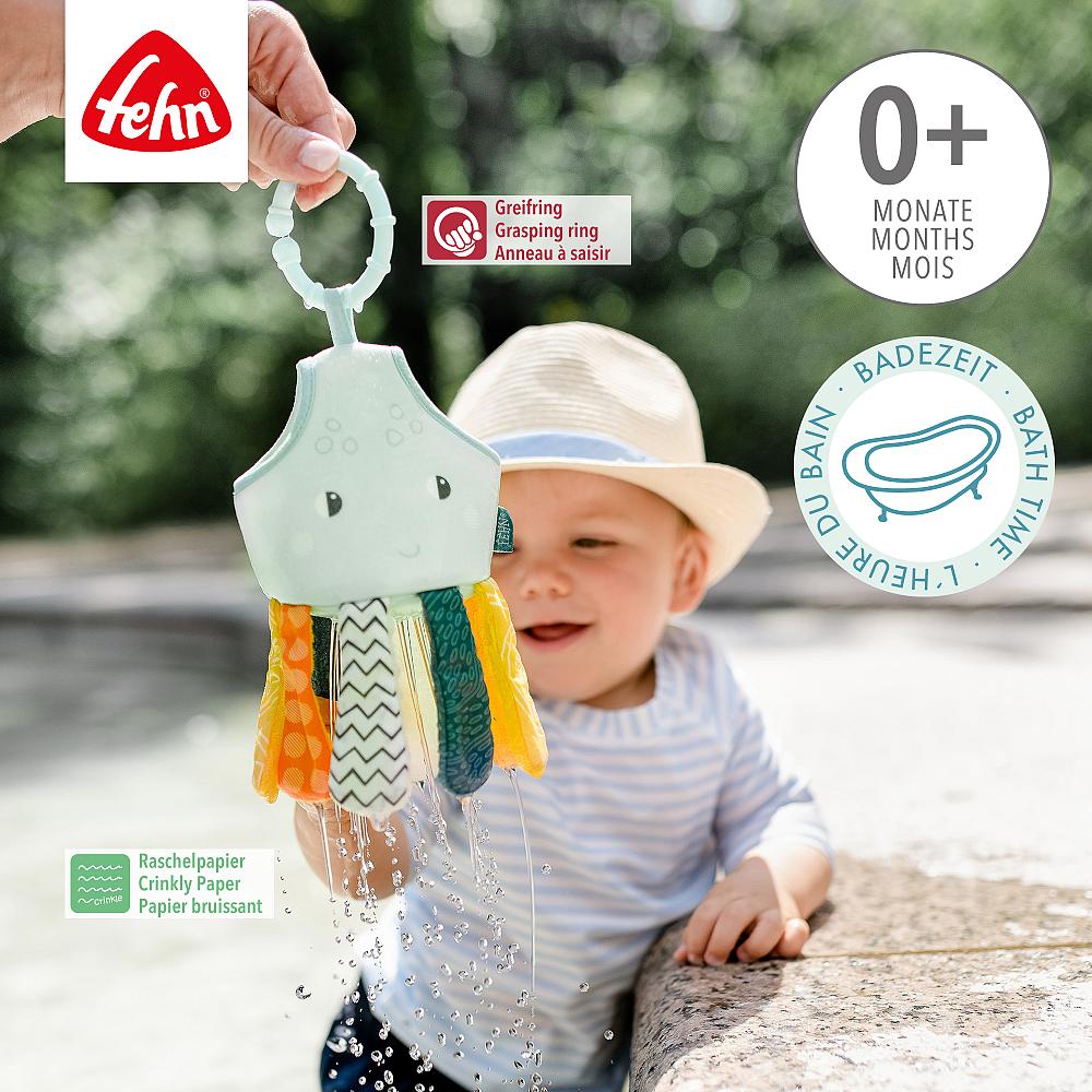 - Para um banho feliz – a diversão do banho é garantida aqui! Com o polvo gotejante da coleção Plansch & Play, tomar banho e brincar agora é ainda mais divertido. O lindo amigo do banho é simplesmente submerso brevemente e puxado novamente usando o anel de aderência - a água escorrendo é então distribuída suavemente por toda a banheira. A água corre pelos buracos na parte inferior do polvo e cria maravilhosos efeitos de respingos de água. Tomar banho é uma verdadeira alegria! O polvo também está equipado com papel farfalhante em seus tentáculos. Não só é o companheiro perfeito para todos os dias de natação, mas também proporciona muita diversão por muito tempo.