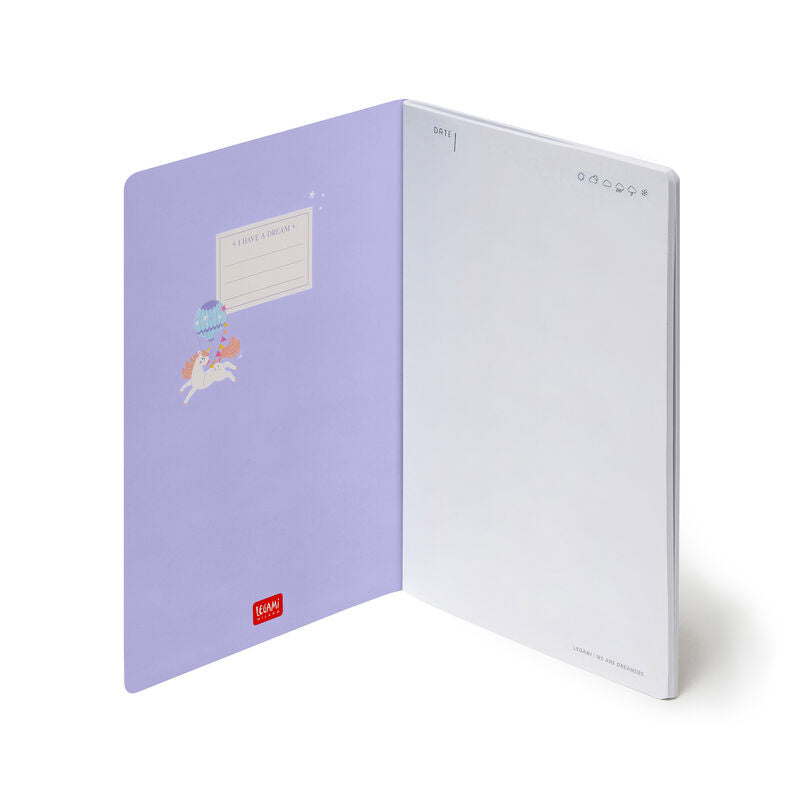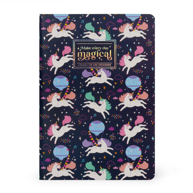 Abrace o adorável Caderno Legami Unicórnio com páginas pautadas - Médio. O formato A5 torna-o no companheiro ideal para casa, escola ou escritório.