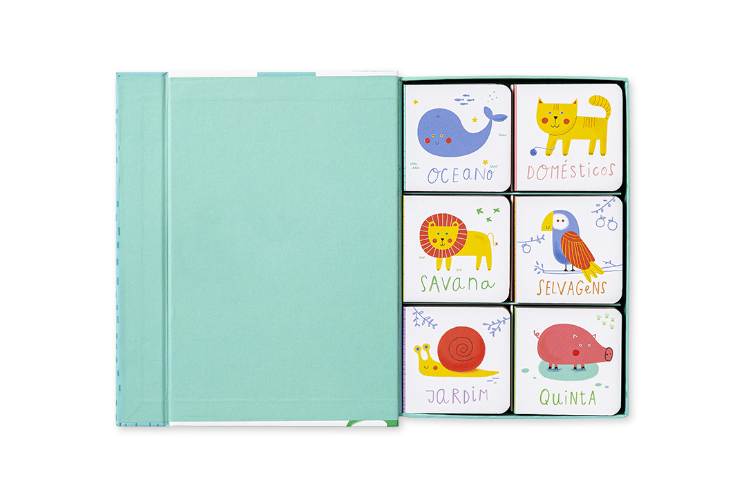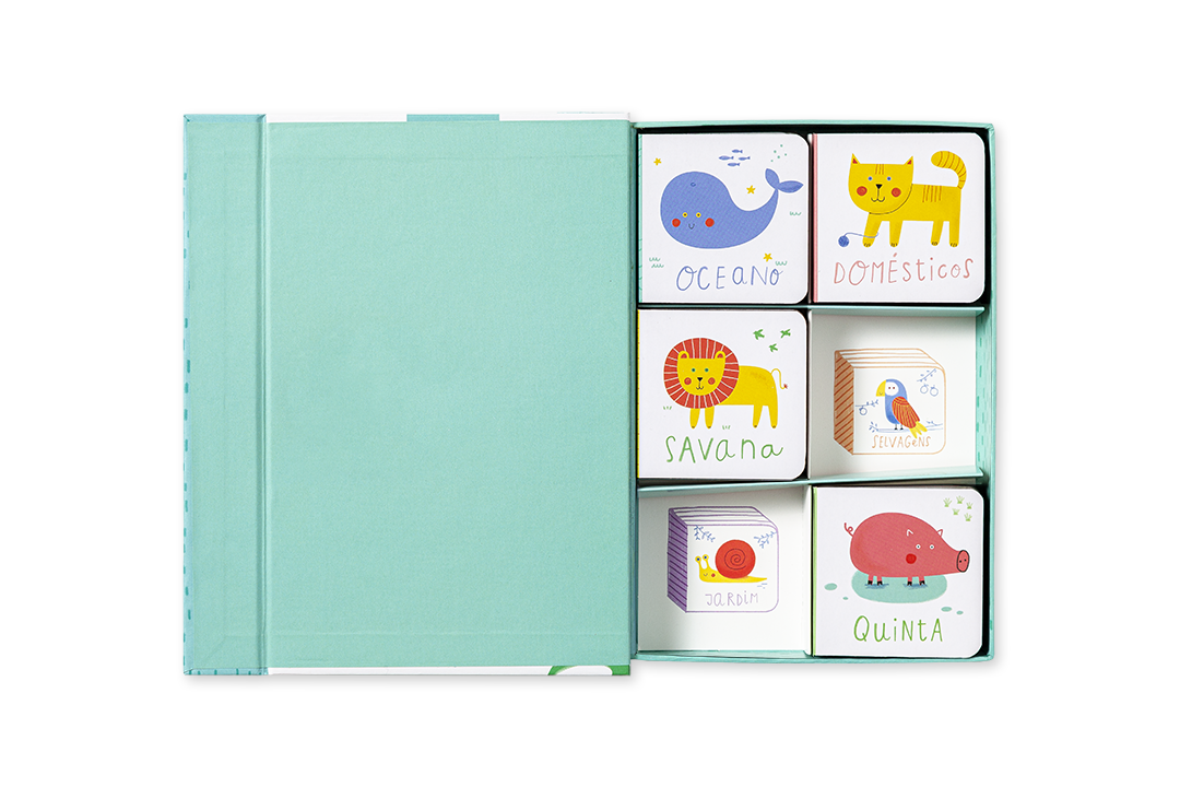 Dentro desta caixa com tampa magnética estão 6 pequenos livros cartonados, desenhados especialmente para mãos pequeninas. As ilustrações temáticas destes dicionários por imagens sobre os animais, tornam-nos ideais para estimular as primeiras aprendizagens. A destacar: Com 6 livros cartonados, ilustrados com cores fortes, ideais para estimular as primeiras descobertas do bebé e promover a sua relação com o livro enquanto objeto. / Caixa resistente com tampa magnética que funciona como um puzzle (o bebé coloca o livro na caixa por cima da imagem que lhe corresponde). / Cada livro explora um subtema de acordo com o tema da caixa: animais domésticos, do oceano, da savana, do jardim, da quinta e selvagens. / Formato pequeno e prático para transportar.
