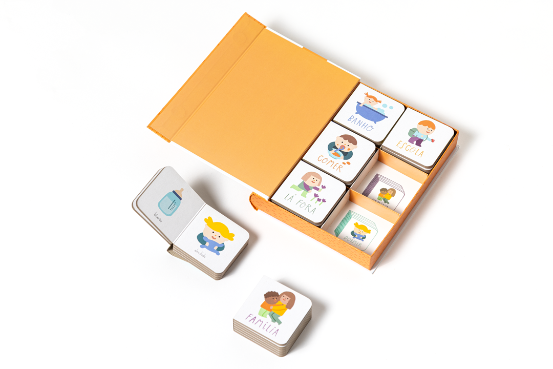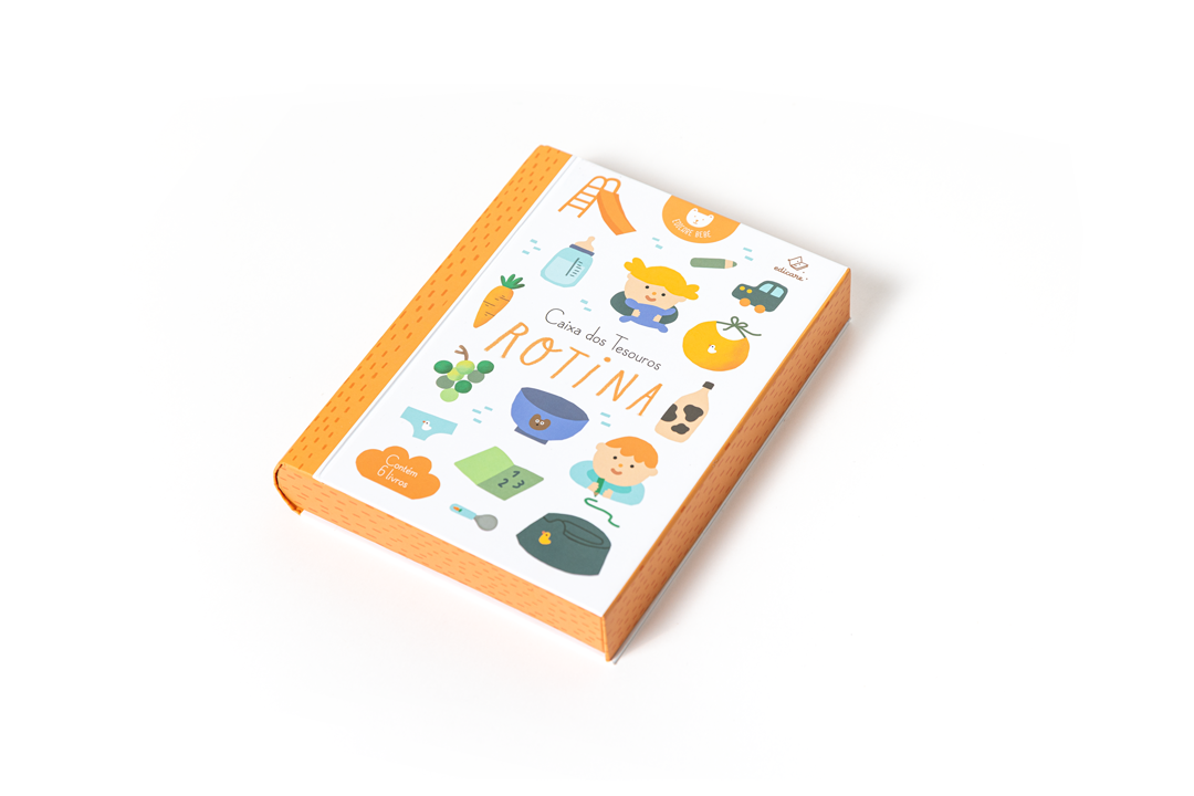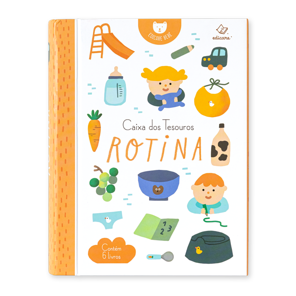 Dentro desta caixa com tampa magnética estão 6 pequenos livros cartonados, desenhados especialmente para mãos pequeninas. As ilustrações temáticas destes dicionários por imagens sobre o que faz parte da vida habitual das crianças, no fundo, a sua rotina, tornam-nos ideais para estimular as primeiras aprendizagens. A destacar: Com 6 livros cartonados, ilustrados com cores fortes, ideais para estimular as primeiras descobertas do bebé e promover a sua relação com o livro enquanto objeto. / Caixa resistente com tampa magnética que funciona como um puzzle (o bebé coloca o livro na caixa por cima da imagem que lhe corresponde). / Cada livro explora um subtema de acordo com o tema da caixa: banho, escola, comer, família, lá fora e dormir; Formato pequeno e prático para transportar.