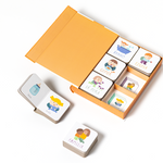 - Funciona como puzzle para que o bebé coloque o livro na caixa em cima da imagem correspondente.
