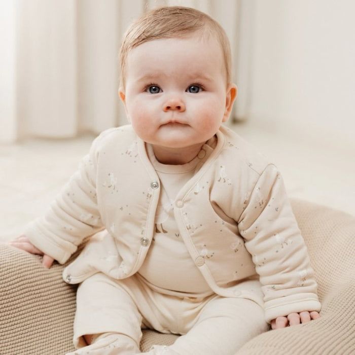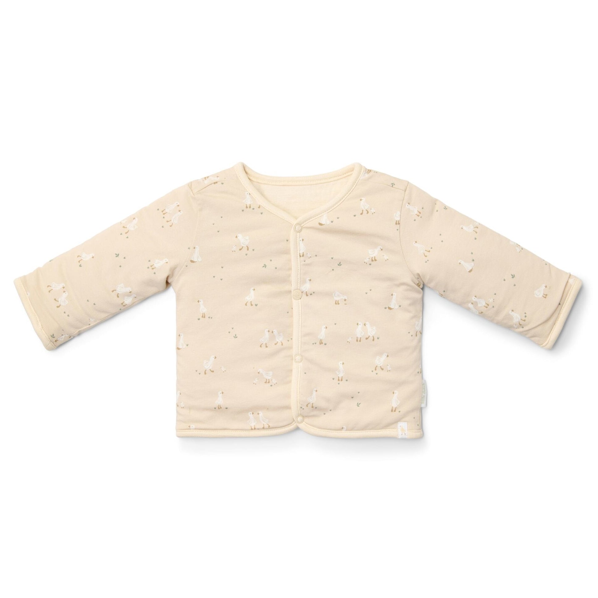 Dois estilos num só! Este casaco reversível é perfeito para o pequeno fashionista que adora variar. Uma cor areia suave com um encantador efeito amassado de um lado e o alegre estampado Little Goose do outro - permitindo combinações infinitas. Feita de algodão orgânico macio e com certificação Oeko-Tex, não só confortável para o seu pequeno, como também amiga do planeta. Seja para um look calmo e elegante ou divertido e alegre, este casaco combina sempre consigo.